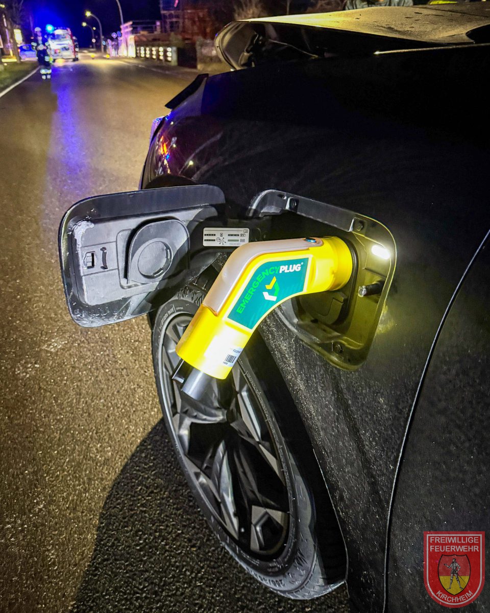 Eine Besonderheit dieses Einsatzes war, dass es sich bei dem beteiligten Fahrzeug um ein Elektro- beziehungsweise Hybridfahrzeug handelte. Zur zusätzlichen Sicherheit kam ein sogenannter „Emergency Plug“ zum Einsatz. Dieses Hilfsmittel wird in die Ladebuchse des Fahrzeugs gesteckt und simuliert einen Ladevorgang. Dadurch wird verhindert, dass das Hochvoltsystem während der Arbeiten aktiv geschaltet wird. Der Emergency Plug erhöht somit die Sicherheit der Einsatzkräfte bei Verkehrsunfällen mit Elektro- oder Hybridfahrzeugen.